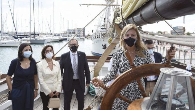L'alcaldessa i altres autoritats realitzen una visita institucional a una de les embarcacions atracades en el moll de Costa
