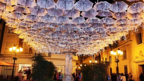 La Plaça Pescaderia es reinventa amb la decoració nadalenca d'"Umbrella Sky"