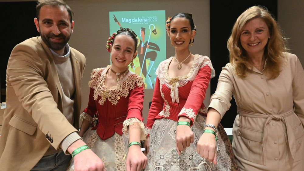 repartiment de les polseres de la Magdalena 2023.L'alcaldessa de Castelló, Amparo Marco, al costat del regidor de Festes, Omar Braina, han entregat aquest divendres les seues a les màximes representants de les festes fundacionals,