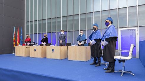 La Universitat Jaume I ha investit com a doctor honoris causa el geòleg Xavier Querol, en un acte acadèmic en el qual el catedràtic d'Enginyeria Química de l'UJI Eliseo Monfort ha actuat com a padrí. L'acte ha estat presidit per la rectora de l'UJI, Eva Alcón; el president de la Generalitat Valenciana, Ximo Puig; el vicerector d'Investigació i Transferència, Jesús Lancis, i la secretària general de l'UJI, Cristina Pauner.Xavier Querol és professor d'investigació del CSIC en l'Institut de Diagnosi Ambiental i Estudis de l'Aigua (IDAEA-CSIC) i investiga en geoquímica ambiental, especialment relacionada amb la contaminació atmosfèrica, amb una àmplia trajectòria reconeguda amb distincions com ara el Premi Rei Jaume I de Protecció del Medi Ambient o el darrer Premi Nacional d'Investigació en Ciències i Tecnologies dels Recursos Naturals.En la seua laudatio, el catedràtic d'Enginyeria Química de l'UJI, Eliseo Monfort, ha destacat els valors que representa Querol per a la comunitat universitària pel seu rigor científic, capacitat de treball i sacrifici personal, a més del seu marcat compromís social i vocació de servei públic, manifestada en una gran implicació social en els problemes ambientals d'actualitat.Així, Monfort ha posat en relleu la gran excel·lència acadèmica del professor Querol però sobretot «la seua vocació de transferència dels coneixements i avanços científics a la societat, i la seua ferma voluntat de no quedar-se sols en estudis en l'àmbit acadèmic, amb una clara orientació d'usar la ciència per a transformar la societat». En aquesta línia, també ha fet referència a la seua gran tasca de divulgació científica cap a la societat civil per tal de crear consciència social en matèria ambiental.