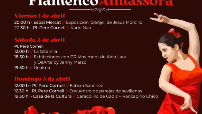 Almassora reprèn avui les jornades de flamenc amb el motiu de reavivar la fira flamenca del municipi i conclouran el 3 d'abril. L'esdeveniment servirà de trobada per a la ciutadania aficionada a aquest estil musical i es caracteritzarà per la mescla d'exposicions, concerts i exhibicions. En aquest sentit, el festival té “un cartell extraordinari”, conforme assenyala el regidor de Cultura, Javier Mollá, en comptar amb les actuacions d'artistes locals com DeAlma o Fabián Sánchez, juntament amb cantants de reconeixement nacional com Rancapino Chico i Caracolillo de Cádiz.La jornada comença aquesta vesprada a les 20.00 h amb l'exposició en l’Espai Mercat de ‘oléAje’ de Jesús Morcillo, fotògraf oficial del Festival del Canto de las Minas, i està oberta la seua visita al públic fins al diumenge. Més tard, a les 20.30h en la plaça Pere Cornell, té lloc l'actuació de canti i ball de l'artista Karlo Nao. El mateix lloc servirà el dissabte per a albergar el concert de La Gitanilla (12.00 h), les exhibicions de sevillanes i ball flamenc de part de les acadèmies de ball d'Almassora DeArte by Jenny Marsó i Castelló PR Moviment d'Aída Lara (18.30 h) i la funció musical del grup local DeAlma (19.30 h).El diumenge tancarà l'esdeveniment el cantant local Fabián Sánchez, que actuarà en la plaça Pere Cornell des de les 12 fins a les 13.30 hores. Durant el seu concert, en el mateix espai, tindrà lloc la trobada de parelles de ball de sevillanes. La jornada conclourà amb els concerts de Caracolillo de Cádiz i Rancapino Chico a les 19.30 h a la Casa de la Cultura, les entrades de la qual ja estan esgotades.L'edil ha remarcat que la programació cultural de la fira d'abril d'enguany és gratuïta amb l'objectiu d'acostar a l'art flamenc al veïnat. “Ha estat reconfortant organitzar aquest esdeveniment després de dos anys d'aturada provocats per la crisi sanitària”, segons Mollá. A més, el regidor ha llançat una crida al veïnat perquè acudeixi a aquests actes i aprofiti la millora de les temperatures per a gaudir de les activitats programades.