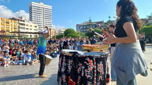 La música de la batucada de l'IES Joan Coromines ha estat la protagonista de la inauguració.