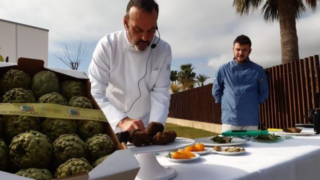 La fusió gastronòmica de la carxofa de Benicarló i la trufa de Morella ha estat la protagonista del showcooking que, just a la vora de la mar, han preparat els xefs Avelino Ramón, del Restaurant Daluan de Morella, que acaba de renovar el Sol de la Guia Repsol, i Carlos Miralles Vericat, del Restaurant Mar Blava de Benicarló.L'acte ha comptat amb la presència de l'alcaldessa de Benicarló, Xaro Miralles, l'alcalde de Morella, Rhamsés Ripollés, el president de Restauració Benicarló, Iván Alemán, i el president de l'Associació d'Empresaris de Morella i Comarca (Asetmico), Javier Tena, a més de la regidora de Turisme, Isabel Cardona, i la regidora d'Agricultura, Inma Díaz.Tant l'alcaldessa de Benicarló com l'alcalde de Morella han lloat la iniciativa de fusionar els dos ingredients, que coincideixen en temporada, i han insistit en la importància d'unir sinergies. «Aquesta trobada —ha dit Xaro Miralles— demostra l'excel·lència dels productes que tenim al nostre territori, tant a la comarca com a tota la província de Castelló, i confirma que combinant dos productes de tanta qualitat, la gastronomia guanya».Per la seua banda, Rhamsés Ripollés ha assegurat que «la voluntat de col·laboració entre els dos municipis serveix per a posar en valor els productes que més i millor ens identifiquen» i ha volgut destacar «el treball dels nostres restauradors i restauradores, sense oblidar el dels treballadors del sector primari que són els qui ens proporcionen aquests ingredients de tanta qualitat».Miralles i Ripollés han posat èmfasi en la potencialitat que suposa el turisme gastronòmic per a Benicarló i Morella.