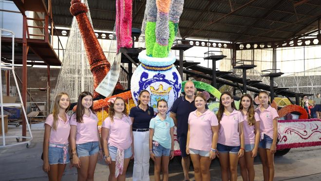 La regidora de Festes, Paloma Boix, acompanyada de les Reines Falleres de Burriana 2025, Clàudia Sabater i Valeria Cuadros, les seues Corts d’Honor i la Bellea del Foc d’Alacant, Adriana Vico, ha visitat hui les carrosses que este diumenge recorreran els carrers de Burriana en la tradicional Batalla de Flors. Amb esta visita, s’han ultimat els preparatius per a un dels actes més esperats del programa festiu.