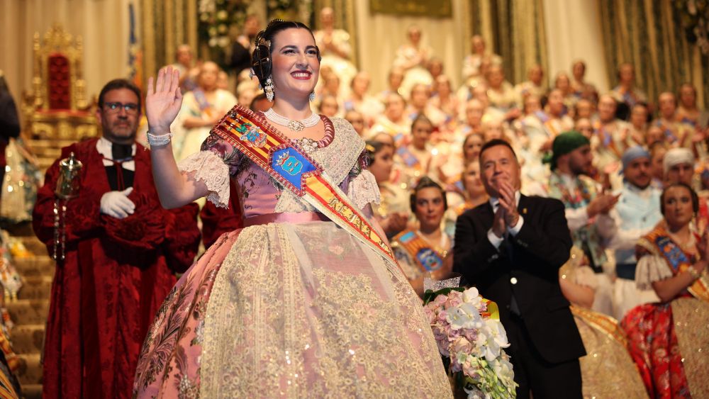 Després de l'acte de proclamació del passat dissabte 15 de novembre, i després del “manifest”, va arribar el moment tan esperat per a Laura Sendra de recórrer el passadís principal del teatre i pujar les escales per a rebre de mans de l'alcalde, Jorge Monferrer Daudí, la banda que l'acredita com a màxima representant de les Falles de Burriana.