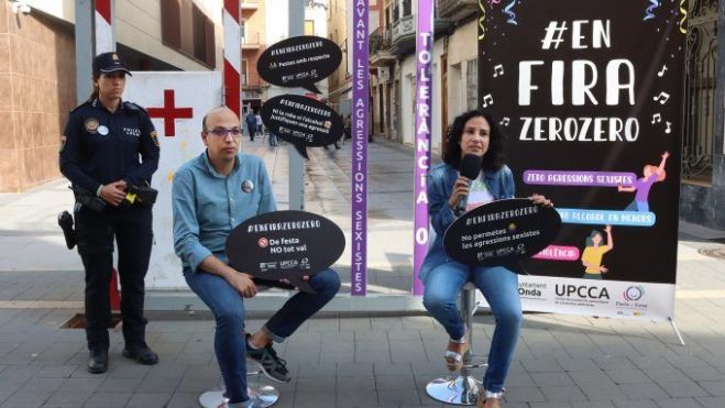 L'Ajuntament d'Onda, a través de les àrees d'Igualtat, Seguretat Ciutadana i Benestar Social, ha presentat aquest matí la campanya #EnFiraZeroZero que persegueix l'objectiu de conscienciar als onders i visitants, especialment entre els joves, sobre la violència de gènere i el consum responsable d'alcohol durant la setmana de festes patronals.Així, el govern municipal ha elaborat material informatiu i promocional que repartirà a les penyes amb la finalitat de sensibilitzar sobre la importància de gaudir d'unes festes lliures de violència i promoure zero consum d'alcohol i tabac entre els menors. Els casals i penyes podran recollir el kit promocional en el Teatre Mònaco el dimecres de 17 a 20 hores i el dijous de 12 a 14 hores i de 17 a 20 hores. Des de l'Ajuntament se'ls animarà que compartisquen en el nou perfil d' instagram de l'àrea d'igualtat fotografies per a visibilitzar la campanya entre el públic jove.Per a això, també es compta amb la col·laboració dels establiments hostalers i la Fonda de la Tapa que compartiran en els seus locals els cartells informatius de la campanya al costat d'altre material promocional.En paral·lel, la Fira tornarà a comptar amb un Punt Violeta, atés per la promotora i agent d'igualtat, per a denunciar agressions sexistes durant els dies de concert en el recinte multiusos així com durant el Dia de Paelles.