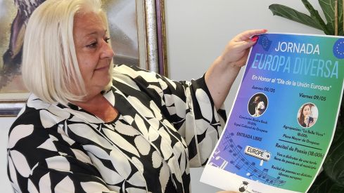 Araceli de Moya amb el cartell de la jornada Europa Diversa a Orpesa