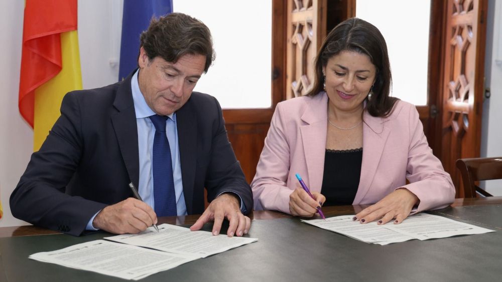 El director general d'Administració Local, José Antonio Redorat, i la directora gerent de la Fundació Escola de Postgrau i Xarxa de Centres d'Investigació en Intel·ligència Artificial de la Comunitat Valenciana (ValgrAI)