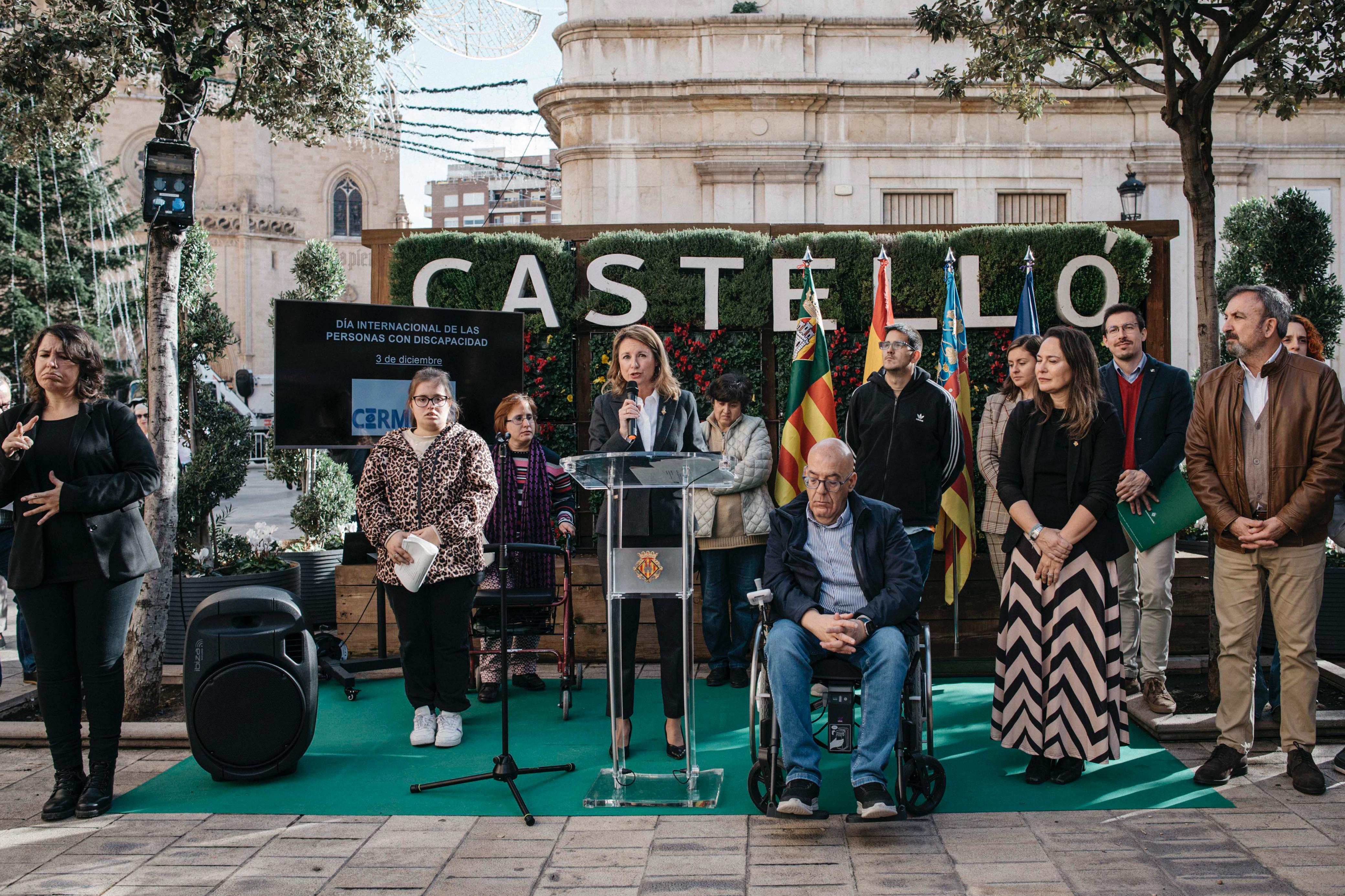 Carrasco ha realizado este anuncio esta mañana durante la celebración del Día Internacional de la Discapacidad, que ha tenido lugar hoy en la Plaza de la Pescadería de Castellón y en el que han participado diferentes entidades y colectivos de la ciudad. La primera edila ha estado acompañada por la concejala de Bienestar Social, Maica Hurtado; además del concejal de Empleo, Juan Carlos Redondo y otros miembros de la Corporación. Durante el acto se ha procedido a la lectura de un manifiesto redactado desde el Comité de Entidades Representantes de Personas con Discapacidad de la Comunitat Valenciana (CERMI), que se ha referido de manera especial a las personas afectadas por la DANA, con la colaboración de personas de las diferentes asociaciones presentes.