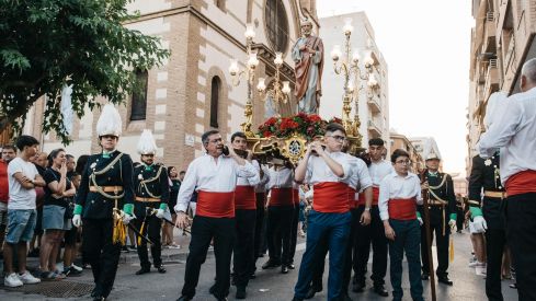 Tras la ofrenda floral ha dado comienzo la tradicional procesión marítima en honor a Sant Pere que ha dado comienzo desde la Iglesia de San Pedro y ha transcurrido por la calle Churruca, la Avenida del Puerto, la calle Trabajadores de la Mar y el recinto del muelle pesquero hasta que ha llegado a la dársena pesquera para continuar la procesión en el mar.