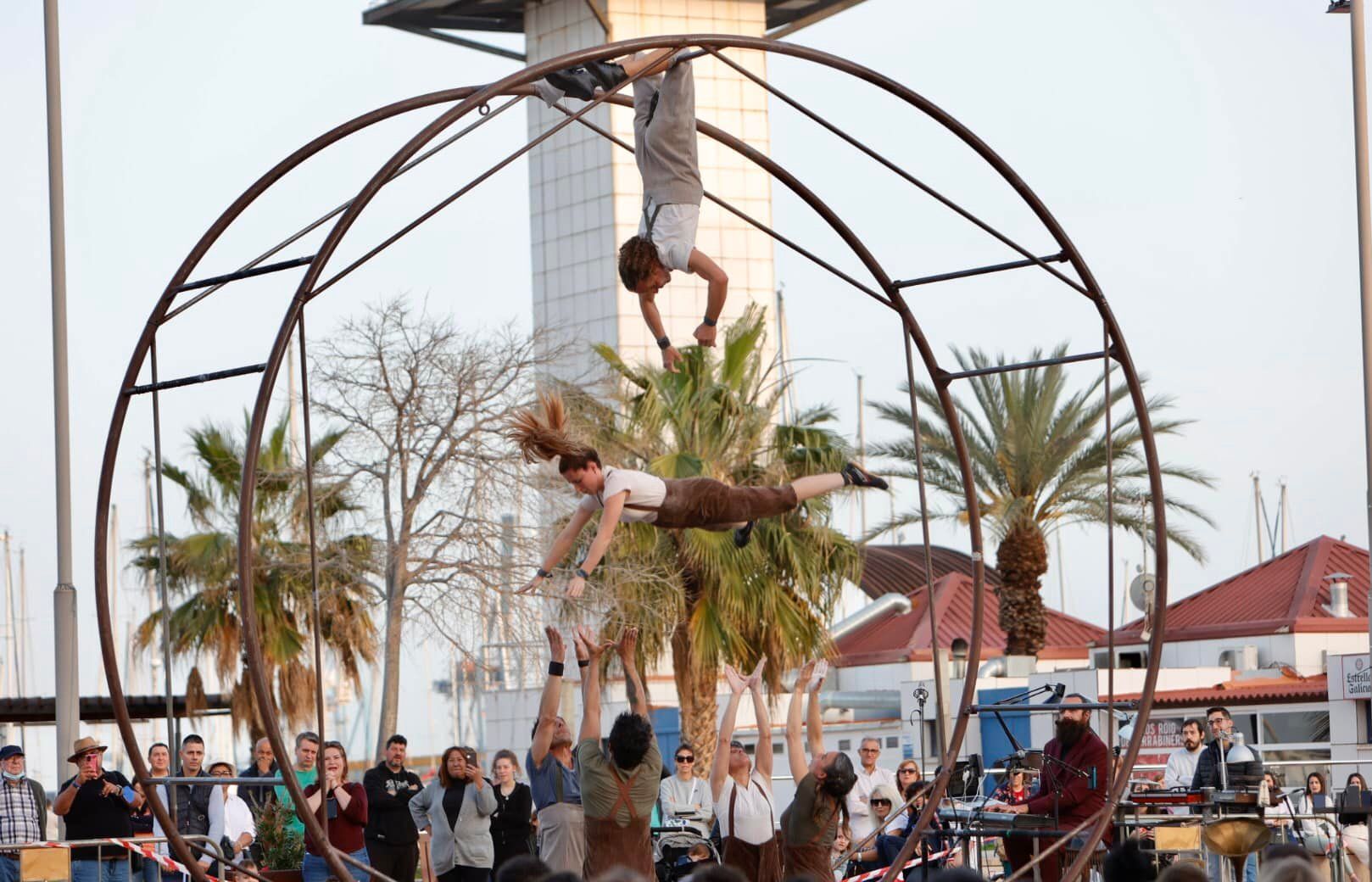viernes, 7 de abril, arrancan con la programación los andaluces Cia Infoncundibles, con 'Diabolo Clasic Metal', un espectáculo que combina música con malabares con una mezcla de circo y humor en La Panderola; seguidos de las mujeres procedentes de medio mundo con base en Euskadi y Cataluña que conforman el Kolectivo Konika con el espectáculo 'Con la punta en mí nariz', donde combinan diferentes artes acrobáticas, en Sète, a las 19.00). Finalmente, los vascos Orain Bi con 'Muto' y sus pèrtigues y pértigas chinas despiden la jornada en La Panderola a las 20.00 horas.Para el