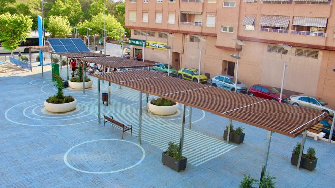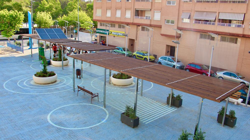El proyecto ha consistido en la creación e instalación de pérgolas con paneles solares, para que ciudadanos y visitantes puedan cargar sus dispositivos móviles. También, con el objetivo de hacer del espacio más sostenible medioambientalmente y renaturalizarlo se han instalado maceteros.