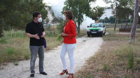 Las concejalías de Sanidad de Castelló y de Benicàssim han iniciado una serie de jornadas de trabajo coordinado en cuanto a las medidas antimosquitos. De este modo, los servicios de ambos municipios aplican tratamientos en paralelo en la zona del marjal para incrementar la efectividad de las actuaciones.El edil de Sanidad de Castelló, Ignasi Garcia, y su homóloga en Benicasim, Vanessa Batalla, han visitado esta mañana el parque situado en el Camí de la Ratlla para conocer de primera mano los procedimientos que están siguiendo los operarios. Durante la visita, los ha acompañado Daniel Montel, presidente de las asociaciones que representan el vecindario de la Marjaleria, una de las zonas donde más molestias causan el mosquitos.«Hace mucho de tiempo que consideramos que el Ayuntamiento de Castelló tenía que coordinarse con el de Benicasim para poder atacar las plagas en la zona del Cuadro de Santiago y del Camí de la Ratlla, básicamente porque los mosquitos no entienden de límites municipales y si aplicamos tratamientos en un lado sí y en el otro no, las molestias persistirán», ha explicado el regidor de Castelló. Garcia ha puesto el énfasis en la «colaboración institucional para poder ser más eficientes» y ha dejado abierta la puerta a «otras colaboraciones para hacer frente a una plaga que requerirá que continuemos dedicando esfuerzos en el futuro».Por su parte, la regidora de Sanidad de Benicàssim, Vanessa Batalla, ha incidido en la importancia de actuar de manera coordinada «para conseguir una mayor efectividad en los tratamientos" y ha añadido que «algunos de los focos más resistentes de mosquitos están situados en la boga de ambas localidades de aquí la necesidad de coordinar nuestras acciones contra los mosquitos».Así pues, tanto en Castelló como en Benicàssim se han aplicado tratamientos para el control del mosquito adulto mediante termonebulización. Las dos empresas encargadas del servicio en cada uno de los municipios han actuado en el Camí de la Ratlla contra el mosquito de marisma, el típico de las zonas inundables.Cabe recordar que el Ayuntamiento de Castelló mantiene activa la campaña extraordinaria de lucha contra los mosquitos para atajar las molestias que estos generan, especialmente en la zona costera del término municipal. Allí, los equipos técnicos refuerzan desde la pasada semana los tratamientos ya aplicados en la Marjaleria, donde trabajan con medidas larvicidas y adulticidas en todas las vías públicas mediante un cañón nebulizador, además de utilizar el método manual para los puntos de difícil acceso.