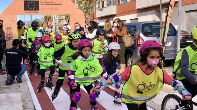 Almassora dispone desde hoy de nuevo anillo de conexión sostenible tras la reforma del bulevar San Jaime con una inversión de 984.948,04 euros. La Unión Europea ha cofinanciado esta reforma, ejecutada en cuatro fases, así como el acto de apertura al público celebrado esta mañana para fomentar los desplazamientos en bicicleta, patines y patinete. La reducción de la contaminación atmosférica y el gasto energético son dos de los objetivos reconocidos por la UE.Quienes han acudido esta mañana a San Jaime con patines, patinetes o bicicleta han recibido una linterna serigrafiada y chalecos reflectantes homologados de elevada visibilidad para fomentar los desplazamientos sostenibles. La empresa local Dobleessa se ha ocupado de la música y las actividades organizadas para los más pequeños coincidiendo con el fin de la última fase de obras.Las 16 banderolas repartidas por el nuevo bulevar han animado a la participación de un evento en el que también ha participado un dj para ambientar la mañana en San Jaime. Niños y niñas han sido los protagonistas de una jornada a la que también han acudido clubes deportivos y asociaciones locales con el fin de apoyar la movilidad sostenible. Los más pequeños han recibido un set de ceras y lápices para colorear en las carpas instaladas en la acera sur de la calle.Evitar el uso del vehículo para reducir los gases contaminantes y evitar el sedentarismo figura entre los objetivos de la Estrategia de Desarrollo Urbano Sostenible Integrado (EDUSI) que presentó el Ayuntamiento de Almassora para lograr la obtención de fondos FEDER de la Unión Europea, además de en el Plan de Movilidad Urbana.Este hecho ha motivado la renovación de esta vía de acceso a la localidad ejecutada en cuatro fases desde 2016 debido al coste del proyecto y a la imposibilidad de mantenerla cerrada en su totalidad durante todo el tiempo. Las obras se han alternado en ambos lados de la calle y con diferentes empresas en función de cada proceso de licitación pública.La siguiente remodelación que forma parte de la operación de mejora de la movilidad urbana incluida en el cronograma de fondos FEDER corresponde a la avenida Castelló. La actuación arrancará en 2022 tras su incorporación al cuadro de inversiones previstas por el equipo de gobierno y que pasarán por el pleno del próximo viernes dentro del expediente de aprobación del presupuesto.