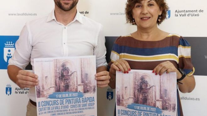 El Ayuntamiento de la Vall d'Uixó ha presentado el II Concurso de Pintura Rápida Ciutat de la Vall d'Uixó – Coves de Sant Josep. Tras el éxito de la primera edición, esta segunda se celebrará el domingo 17 de julio, con dos importantes novedades: el concurso por parejas y el concurso infantil. Además la categoría absoluta cuenta con ocho premios en metálico.En la categoría A (para mayores de 16 años), el primer premio es de 1.100 euros y el segundo de 900 euros, ambos patrocinados por el Ayuntamiento. Los siguientes están dotados con 800 euros (Caixa Sant Vicent), 750 euros (Caixa La Vall San Isidro), 700 euros (Blumaq), 650 euros (Aquabella), 400 euros (Associació Arqueològica) y 400 euros (Arrebato Modas). En la categoría por parejas hay un único premio de 700 euros que patrocina el Ayuntamiento.Y en las categorías infantiles, en la B1 (de 12 a 15 años), se otorga un primer premio de 200 euros en metálico patrocinado por el Ayuntamiento, segundo premio de 75 euros en material (La Bombilla Negra) y tercer premio de 50 euros en material (Esplai); y en la B2 (de 9 a 11 años), un primer premio en metálico de 100 euros (Ayuntamiento), un segundo de 75 euros en material (La Bombilla Negra) y un tercero de 50 euros en material (Esplai).El concurso comenzará el domingo 17 de julio a las 9.30 horas. A partir de las 14.00 horas las obras se expondrán en la avenida Jaume I, alrededor de 'les casetes dels mestres', y a las 18.30 horas se entregarán los premios. Una vez finalizado el certamen, las pinturas premiadas se trasladarán al Centro Cultural Palau de Vivel, donde se podrán visitar durante dos semanas para que toda la ciudadanía pueda disfrutarlas.La concejala de Cultura, Maria Cruces, y el concejal de Turismo, Jorge García, han presentado esta segunda edición del Concurso de Pintura Rápida Ciutat de la Vall d'Uixó – Coves de Sant Josep. Así, han destacado que participarán pintores de toda España, que "acercarán el arte a la calle, porque se podrán encontrar artistas por toda la Vall, pintando nuestros lugares más emblemáticos". El objetivo de esta edición es que este certamen "siga creciendo y cogiendo prestigio, porque es un proyecto que ha venido para quedarse".Ambos han agradecido la implicación y la colaboración de las empresas y entidades patrocinadoras "porque engrandecen y hacen más relevante el concurso". Para finalizar, han señalado que el 17 de julio "veremos pinceles y colores combinados magistralmente para dar forma a nuestros paisajes naturales y urbanos", por lo que han invitado a todos los valleros y valleras "a salir y encontrarse con el arte, la cultura y la pintura".