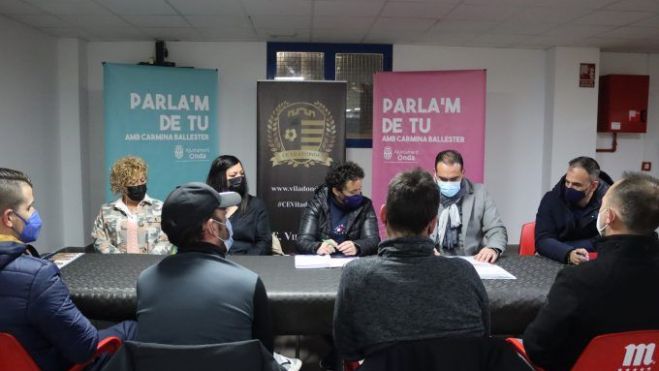Siguiendo con su apuesta por la participación ciudadana y la cercanía, el Ayuntamiento de Onda ha lanzado la campaña ‘Parla’m de tu’ con el objetivo de escuchar a los clubes, entidades sociales y asociaciones culturales de la ciudad. La alcaldesa, Carmina Ballester, ya ha iniciado una ronda de visitas para conocer de primera mano las necesidades de las diferentes entidades y reforzar la colaboración del gobierno municipal.El club de fútbol Vila d’Onda ha inaugurado esta nueva iniciativa y ha tenido la oportunidad de presentar al equipo de gobierno el proyecto y planes de futuro de la escuela deportiva, representado por la primera edil y los concejales Jose Vicente Iserte, Óscar Valero y Paco Pastor.Ballester se comprometió a solucionar las demandas planteadas en la reunión, entre ellas la mejora de la accesibilidad a las instalaciones del campo Olímpic o la sustitución de la luminaria actual por bombillas LED.“El Ayuntamiento estará siempre al lado de nuestro tejido cultural, deportivo y social porque es la vida de nuestra ciudad. Es fundamental sumar entre todos más y mejores servicios para nuestra gente, más opciones deportivas, culturales y de ocio, porque sumaremos calidad de vida a todos los ondenses”, ha destacado la alcaldesa.Por su parte, el presidente del C.E. Vila d’Onda, David Palacios, ha apuntado que “iniciamos hace unos años un proyecto muy emocionante y aunque ahora estamos en un excepcional momento, hemos hecho grandes sacrificios. Pero con ganas, ilusión, y la ayuda del Ayuntamiento de Onda hemos llegado hasta donde hoy estamos”.