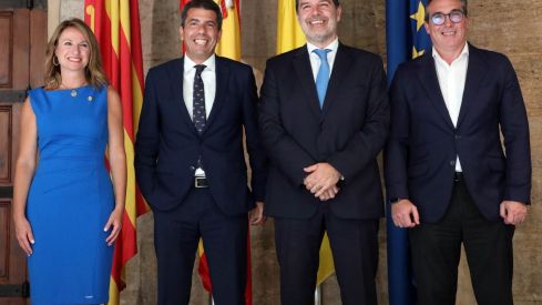 L'alcaldessa, Begoña Carrasco, al costat del president de la Generalitat Valenciana, Carlos Mazón i el president de l'Autoritat Portuària de Castelló, Rubén Ibáñez, ha participat aquest dimecres en la signatura de l'acord d'intencions per a la implantació del projecte Harmonia Green Comunitat Valenciana.