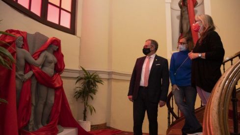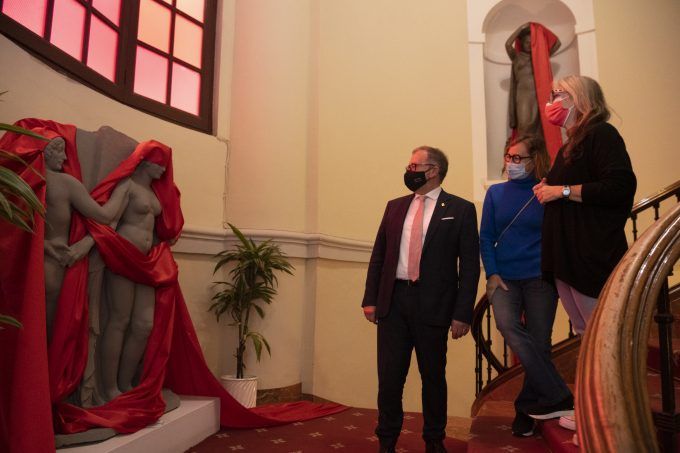 La Diputació tiny de roig les escultures del Palau Provincial per a sensibilitzar contra la violència de gènere